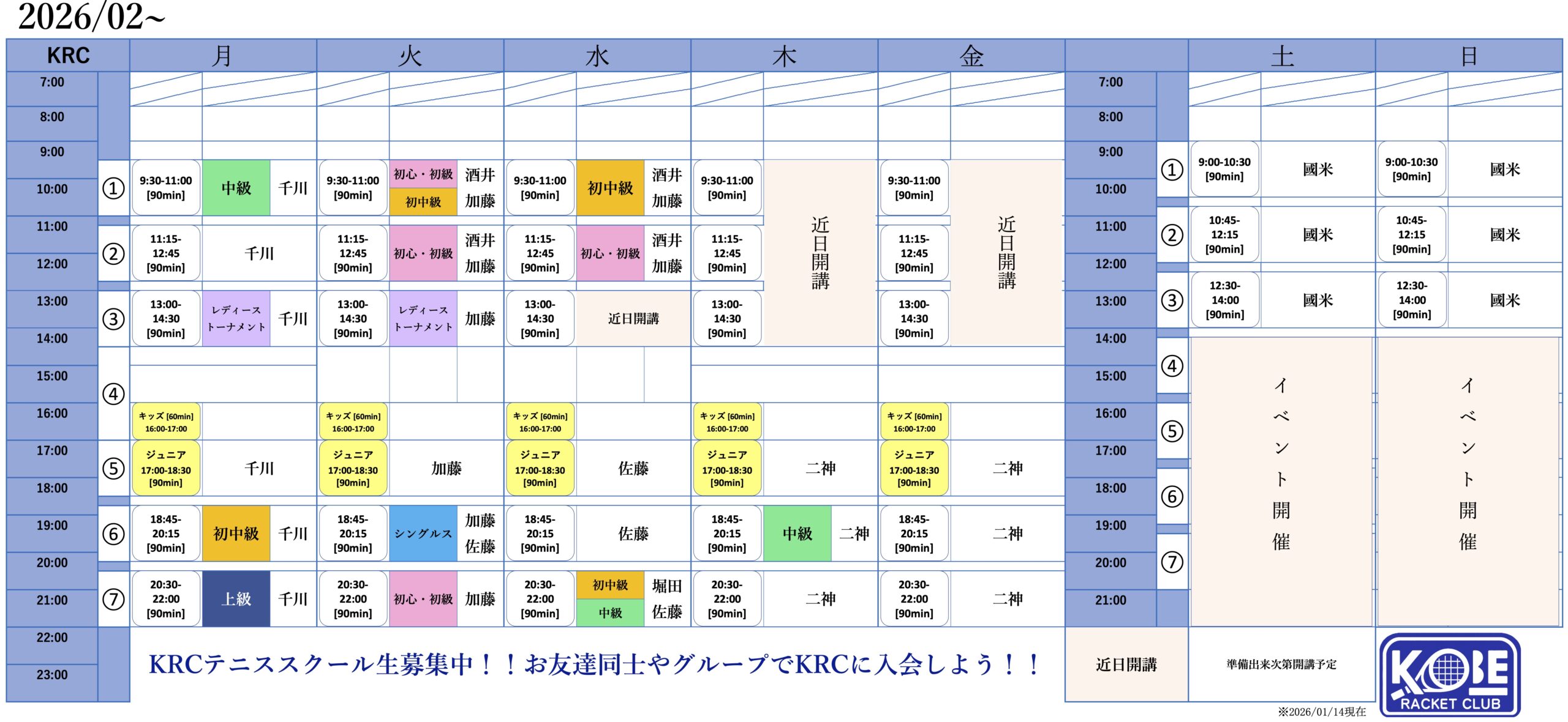 神戸ラケットクラブスクール会員料金